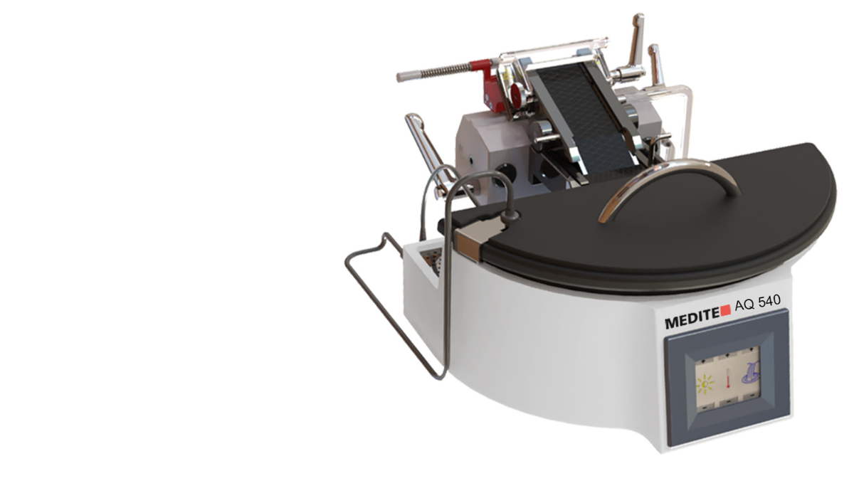 AQ 540 överföringssystem för paraffinsnitt ger lösningen på de dagliga utmaningarna med att snitta krävande paraffinblock. Den består av en särskild knivhållare för engångsblad med integrerad överföringsbrygga och ett uppvärmt vattenbad och kan kopplas till den helautomatiska rotationsmikrotomen A550. Snitten sträcks omedelbart under processen tack vare det temperaturkontrollerade vattenflödet. Vattnets flöde kan alltid justeras enligt snittningskraven. När överföringsbryggan är infälld leds snittavfallet m.h.a. vattenflödet rakt ner i avfallsbehållaren och samlas där. Detta minskar mängden avsevärt. Frekvent tömning av avfallsbehållaren är inte längre nödvändig. När överföringsbryggan är utfälld glider snittet försiktigt direkt ner i det temperaturkontrollerade vattenbadet. I det upplysta vattenbadet kan snitten utvärderas och väljas ut. De högkvalitativa snitten kan nu enkelt hanteras på vanligt sätt. Alla inställningar utförs via pekskärmen på framsidan.